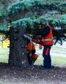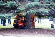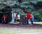 срезали 17-ти метровую зеленую красавицу и повезли к Сити Холл. Ежегодно один из горожан дарит елку мэрии. Происходит сие действо следующим образом, люди предлагают свои елки, специальная комиссия решает, какую елку выбрать. В этом году было представлено 90 деревьев, выбрали елку из района River Heights. Сегодня в полдень установят красавицу перед горсоветом. Затем несколько дней будут украшать, планируется разместить 9000 разноцветных светодиодных лампочек.