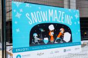 Всё прошло замечательно. Лабиринт складывали из сухих снежных блоков, которые тут же формировали в пластиковых коробках. Очень понравилась идея закладывания верёвки в снег в виде ручки, за неё блок вытаскивался из коробки. Есть и ледяные плитки с рисунками детей внутри, украшение лабиринта. Красные, синие квадраты на снегу, это сиденья с искусственным белым мехом. Всё предусмотрели организаторы, приготовили горячий шоколад, играла музыка. Так, играя, дети и родители выстроили снежный лабиринт. Приятная память останется надолго в семье о классном зимнем отдыхе. Мы делали фотографии сегодня, лабиринт есть, есть и юные путешественники в нём. Скоро откроется французский зимний, очень красивый фестиваль Festival De Voyageur, где традиционно выстраивается снежный лабиринт, прямо, как из моего далёкого детства. Сейчас посмотрела фотографии прошлого года и сама себе завидую, как красиво, уже хочется скорее туда попасть опять. Что там интересно в этом году сделают из снега. Скульпторам хорошо этой зимой, снега много. Пожелаем им волшебных скульптур.
