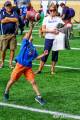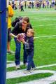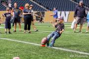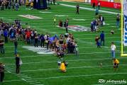 На поле развлекали детей, с ними тренировались, они пинали, отрабатывали броски, бегали на перегонки, прыгали, даже вертолет подогнали с крутящимся пропеллером. Одним словом, футбольный праздник для болельщиков и их детей.