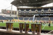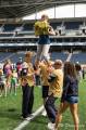 Сегодня открыли стадион для горожан и устроили всеобщее веселье. Можно было попробовать всё! Вы наверняка знаете, кто такие спортивные девушки и юноши, выбегающие в течение игры на поле, танцующие и показывающие акробатические этюды,