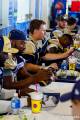 Вся команда футболистов раздавала автографы. Желающие подписей выстаивали почти 200сот метровую очередь. Расписывались на майках, фуражках, штанах, в общем, любой каприз.