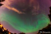 Я такого еще не видела, прямо над головой небо было в клетку. Облака образовали полосы с севера на юг и их пересекали полосы верхней части овала из сиянья. Фантастика. Невероятно красиво и необычно. Продолжалось минут 5, оторваться не было сил от неба. Крупная клетка на фоне звезд. К сожалению, сфотографировать не получилось. Всё быстро двигается там наверху, своя стихия, не подвластная человеку, пока бегали за камерой, очертания северного сиянья изменились.