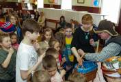 в церковь. Все игры тематически связаны с Пасхой. Яица били, победитель остался с не разбитым крашенным, освященным яйцом. В расписных деревянных ложках носили яйца на скорость. Звучали стихи и в завершении мини спектакль по мотивам всем известной, русской сказки Курочка Ряба и золотое яичко. Артисты, просто профессионалы, так здорово показали сказку. Смотрели все, и дети, и их родители. В завершении детвора получила подарки. Праздник удался на славу, сделан с любовью, радостью, отличным настроением! Молодцы! Пишу и улыбаюсь, вспоминая.