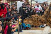 Малыши на удивление тянули ручки приласкать страшилище. Оно и понятно, это для нас змей Горыныч был чудовище, а для нонешнего поколения все друзья, хотя были и трусишки, к родителям жались. Наверно, увидеть динозавра в детстве - это здорово. Перед встречей или после неё можно почитать книжку о динозаврах, а потом и шоу посетить.