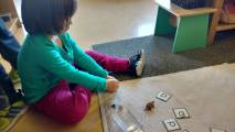 В школе нет игрушек, привычных нам взрослым (куклы, машинки, пластик). Каждый ребенок сам выбирает тему, которую он хочет познавать на данный момент, в классе нет парт, как привычно в обычных школах, учителя плавно перемещаются по классу и работают один на один или в маленьких группах. В первое время мы были очень удивлены тишине, которую наблюдали в комнате. Дети общаются между собой и с педагогами спокойно и не на повышенных тонах, звучит возможно неправдоподобно. :)