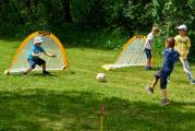 Воздушные замки становятся постоянными гостями пикников, где дети с удовольствием бегают, прыгают, в общем выпускают пар. Замок доставили в парк волшебные пираты Эли и Анна. Если на прыгалках дети вместе, и мальчики, и девочки, то на миниатюрных футбольных полях уже только мальчики, а девочки направили взоры на волшебные татуировки хной.