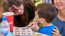 Наносились узоры не только хной, аквокраской разукрашивались детские мордашки, куда выстроилась тоже очередь из желающих пиратиков.