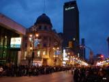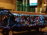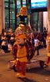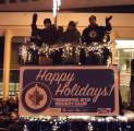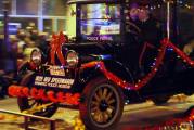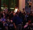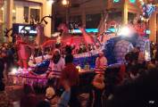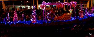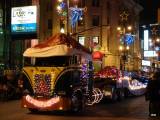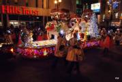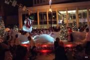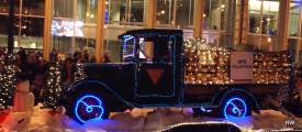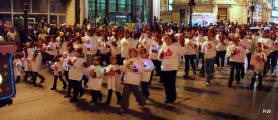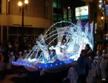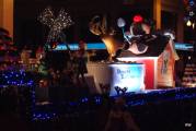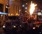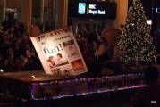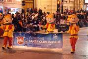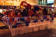 Ближе к концу парада народ уже не сдерживают блюстители порядка и карета Санты движется в окружении толпы под неожиданные дождинки.