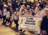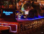 Праздник продолжается, едут, идут, маршируют, танцуют, поют, поздравляют, сигналят. Газовщики пускают горящие столбы газа в воздух, оторвавшись от труб огонь преобразуется в загадочные фигуры, стремящиеся вверх, под радостные вопли народа. Команда Джетс участвовует в параде, Королевский балет, пожарные, полиция, кадеты всех мастей и сословий. Композиции из разных сказок народа мира проплывают передо мной. Детям кидают конфеты. меховые мультяшные герои обнимаются со всеми желающими. Карибский кристмас со здоровенным попугаем, Снежная Королева, китайский шикарный нежно-розовый цветок в середине с танцовщицей вместо тычинки, в фотоальбоме все это обнаружите. Украинцы четко забили за собой Снежную Королеву. Русских так и не появилось на параде, надеюсь когда-то Виннипег увидит русскую композицию на параде.