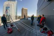 На третьем этаже была еще одна крыша, куда и приземлялись все отважные люди. Меня туда сопроводил молодой человек, через маленькую дверцу выпустили на крышу, надев предварительно каску.