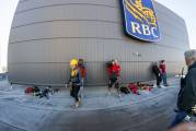 Получив разрешение, мы отправляемся на крышу RBC, где в центре еще один этаж, не видимый с улицы. Нас предупредили от стен этого этажа не отходить и ждать своей очереди на сьемку. Желание отойти от стенки не было вообще. Сильнейший ветер, крыша в воде, скользко. К такому повороту событий я не была готова. Мы и оделись легко, и неправильно. На крыше разрешалось находиться не более 2-м представителям прессы, все со страховочными поясами. Мне не то, что фотографировать, мне стоять у стены было жутко. Сделав пару кадров, я попросилась вниз.