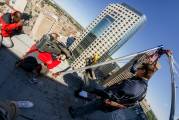 Были и костюмированные персонажи, но в наше присутствие на крыше, они отсутствовали. Невооруженным глазом можно определить профессионала от любителей. Профи вытворяли в воздухе все, что хотели, и вниз головой, и крутились вокруг веревки, стучали и приветствовали людей в окнах, бегали по периметру по окнам, отталкивались от здания ногами и болтались в воздухе, одним словом - шоу.
