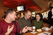 Для нас официанты составили столы в один ряд и казалось, что ожидают прибытие небольшой, но как минимум свадебной церемонии. Надежды оправдались, так как число прибывших гостей было равно количеству мест! Среди пришедших были люди из разных уголков Украины и ближнего зарубежья: Шостка, Киевская область, Харьков и Прибалтика. В основном, все присутствующие - это люди, прошедшие интервью в Киеве, поэтому многие были знакомы между собой. Однако были и те, кто пришел познакомиться впервые, и те, кто побывал на визите в Виннипеге, а также те, кто активно планирует такие визиты в будущем.