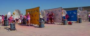 Диджей от Energy 106 зажигал по-взрослому. Звучала попса, девчонки на сцене танцевали, в толпу кидали мячи, футболки, бомбы, пакеты с краской. Общий праздник. Заряд энергии, радость и многоцветье красок в воздухе, улыбки, шутки. Удивило количество участников, среди которых в основном молодежь. Возвращались к финишу уставшие, выкрашенные. От финиша до сцены около ста метров, их достаточно было для отдыха. К сцене подходили бодренькие, подтанцовывавшие спортсмены и опять уходили в движение под звуки музыки. По пути фотографировались, организаторы устроили фотосессию для всех участников. В заключение общая вечеринка сегодня вечером, куда приглашаются все бегуны, волонтеры и их гости, вплоть до домашних питомцев.