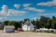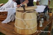 Историческая деревня-музей: церковь, школа, сапожная мастерская, магазин, дом-музей, старая техника, уличная пекарня. Всё можно увидеть на фотографиях, на пекарнях остановлюсь. Такие печи вижу впервые. Их несколько, каждая  с большой дверцей, через которую ставят тесто и вытаскивают готовый, подрумянившийся, ароматно пахнущий хлеб. И, каждая с маленьким круглым отверстием с противоположной стороны от дверцы, туда заглядывают посмотреть, подрумянился ли хлеб. Я тоже заглянула с камерой, аромат очаровал, в мыслях не было вообще покупать хлеб, но после запаха, встала в очередь. Булка была сьедена почти мгновенно нами, хорошо подошли знакомые,  с ними поделились. В селе-музее тоже угощали, на костре жарили колбасу, свинину большими кусками, шашлыки, варили борщ. Немного в сторонке сидел украинец в национальной одежде, курил трубку и на столике стояли виски. Борода на подбородке выкрашена в синий цвет и заплетена в тонюсенькую косичку. Спрашиваю, где горилка. А он по-английски, водка что ли, неа, я люблю виски. Не патриотично как-то)). Рядом стреляли из ружей, дрались на мечах, когда уже отошли, увидели костюмированных всадников на конях.
