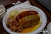 Концерт состоял из танцев местных коллективов. Из еды вкусные фаршированные перцы, блины, сырные пироги. В салате много уксуса на мой вкус. И голубцы больше нравятся из свежей капусты, нежели кислой, как в сербской кухне, зато начинка голубцов, как в России, мясная. В целом, все понравилось. Все четко, без заминок, сцена не пустовала вообще, шоу длилось ровно 45 минут. Рядом со сценой крутилось слайд-шоу о Сербии на большом экране.
