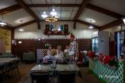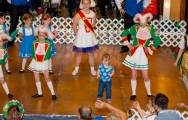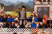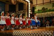 Во внутреннем дворике сплошная фиеста, стоят столы на улице и в огромной палатке, где играет группа музыкантов, продается алкоголь, танцплощадка и столики вдоль стен. Народ отрывается по полной в танце под живую музыку, немецкое темных и светлых сортов пиво льется рекой, переодетые в шутов, люди развлекают публику. На первом этаже здания находится дисплей, продают национальные костюмы, далее следует концертный зал. Он не такой большой, как спортзал, который обычно рентуют для фольклорамы, в нем расставлены круглые столы с белыми и черными скатертями, там же бар, кухня и официанты в национальной одежде. Бар сразу не сфотографировала, шоу так завлекло, что и потом забыла. Есть огромных размеров балкон по трем сторонам зала, он тоже полон стоящего народу, в основном молодежи. Организация, концерт - все на высшем уровне. 45 минут минут пролетели на одном дыхании. Полный аншлаг! Знаменитое варьете. Классное исполнение Донна, Донна, Мария поддержал весь зал. Все вместе и пели, и танцевали, даже все вместе выпили. Из еды фирменные шницели, но мы ничего не ели, сербы нас перекормили. Сделала пару фотографий десерта.