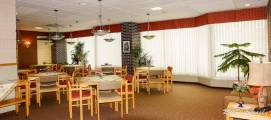 Очень уютное, чистое здание, красиво оформленная прихожая с камином, телевизором и мягкой мебелью. Имеется общая кухня, общая столовая, но здесь жильцов не кормят. Некоторые люди сдружились и готовят сообща себе еду и завтракают, обедают вместе. Это может делать любой желающий, живущий в доме, может также принять внизу своих гостей на званный ужин. праздничные совместные ужины - традиция у жильцов.