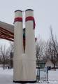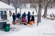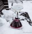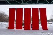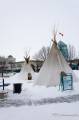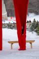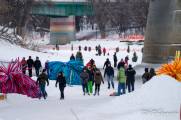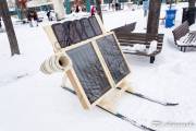 На реке уже раставлены всякие прикольные штучки, о которых мы немножко рассказали раньше, решили их запечатлеть. Ресторан почти готов к посетителям, доделываются последние штрихи. В него можно заехать прямо на коньках, всё для этого предусмотрено и есть что-то вроде веранды без дверей для обогрева гуляющих. Шарфы, как и обещали участники конкурса, весят под пешеходным мостом. Отдыхающего люду полно на реке, и пешеходы, и конькобежцы, фигуристы, хоккеисты. Весело, но холодно. Мои пальцы примерзли к камере, да, и за камеру боязно. В общем, зашли выпить горячего шоколада. И тут встречаем знакомых, они отдыхают в ресторане Old Spaghetti Factory и нас туда, буквально, затащили, но обедать мы все-таки отказались. Вручили по бокалу глинтвейна, без этого просто не отпускали. Не удобно было нарушать не наш праздник и мы удалились, спросив разрешения выйти с бокалами на улицу и обещанием их вернуть. Вышли и опять взялись за камеры, к счастью, они не запотели. Фужеры поставили на скамейку. Смотрите, что с ними случилось. Вообще-то глинтвейн делают из красного вина, но видно манитобцы разнообразили ассортимент, греют отлично оба вида. Спасибо, хорошие люди.