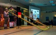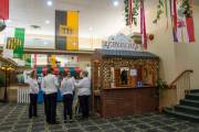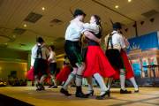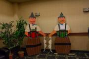 Открытие фестиваля Манитобским представителем Её Величества стало традицией. Оказывается наш господин Ли приколист. Сказал много хороших слов гостям и участникам фестиваля и вдруг у него зазвонил телефон в кармане. Он поставил регламент своей речи и превратил это действо в шутку. Аудитория в Канаде всегда отзывчивая, тепло приняла и речь губернатора, в заключении которой прозвучали новогодние поздравления с Китайским Новым годом. Затем выступила мэр города, эмоциональная лэди Shari Decter Hirst. Губернатору предоставили почетное право открытия первой пивной бочки, ее открывают молотком. Он и здесь пошутил, получив молоток в руки, спросил что делать и прикоснулся молотком к своей голове. Первые две кружки заполняются пеной, их отставляют в сторону, далее идет разлив для употребления. Почетных гостей усадили за отдельный стол и концерт начался. В этом году открыл фестиваль Немецкий павильон, он же был и в 2004 году. Каждый год павильоны меняются для участия в открытии. У фестиваля есть представители в исполкоме города, их число колеблется по годам от 8 до 10 человек. Одному павильону разрешается иметь не более 3 представителей в исполнительном комитете. Комитет по фестивалю созывается только по текущим и организационным вопросам. Павильоны, также как и павильоны Фольклорамы Виннипега, расположены в нескольких зданиях города, между ними ходит бесплатный городской автобус и вход в павильоны бесплатный. В Немецком павильоне понравилось всё. Весело, задорно, шутейно. Люди улыбаются, артисты шутят. Я фотографировала около сцены, девицы крутили подолами, а парни заглядывали под них - это танец такой. Ну, и сильная половина подкалывалась над собой, один сидит рядом со мной: О, я, я, гуд, натюрлих, типа давай, крутись дальше. Вроде пошло, но воспринимается прикольно, тем более это не на публику, а потихоньку. Я хоть немецкого и не знаю, но язык жестов, эмоций понятен всем.