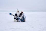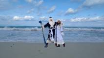В принципе весело получались традиционные встречи, но ведь хочется чего-то необыкновенно-волшебного. А почему бы не пригласить деда Мороза со Снегуркой. ну и пусть все большие. И решила, деда Мороза со стороны брать не будем, воспитаем в своей семье. Получилось раздобыть костюмы Мороза и Снегурки. Хотелось сюрприза, муж вдруг ушел в отказ, а руки я редко опускаю, пришлось обратиться к сыну в законе и внучке, тем самым раскрыв секрет. Ну, ничего. Сообщила за день, волновалась, конечно, но... всё получилось лучше, чем думалось. Во время Рождественской прогулки после сытного обеда в роли деда Мороза и Снегурочки побывали почти все. Посох в руках дед Мороза творил чудеса. Один взмах посоха и перед нами теплый океан, другой дед махнёт и мы в ледовом замке или волшебно-красивом лесу. Чудеса случаются!