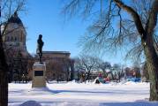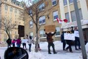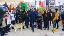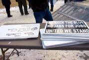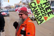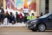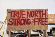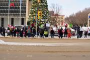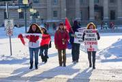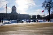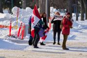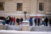 Сегодня люди Манитобы собрались поддержать конвой Свободы. Из Брандона рано утром выехала колонна в Виннипег, в 10:30 утра они уже были на тракерской парковке перед Виннипегом. Мы сделав несколько снимков, уехали к местному парламенту. Люди шли с самодельными плакатами вдоль всей авеню Portage, проезжающие автомобилисты сигналили им.