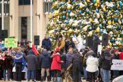 Наш парламент тоже весь в ремонте и въезд заблокирован двумя государственными автомобилями. На ступенях стояло несколько десятков человек тоже с транспарантами, ожидали колонну из Брандона. Чуть позже они встали перед въездом. Далее мы отправились к мэрии. Полно людей на улицах, идущих небольшими компаниями, которые тоже в теме дня, их также приветствовали проезжающие водители сигналя.