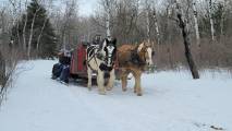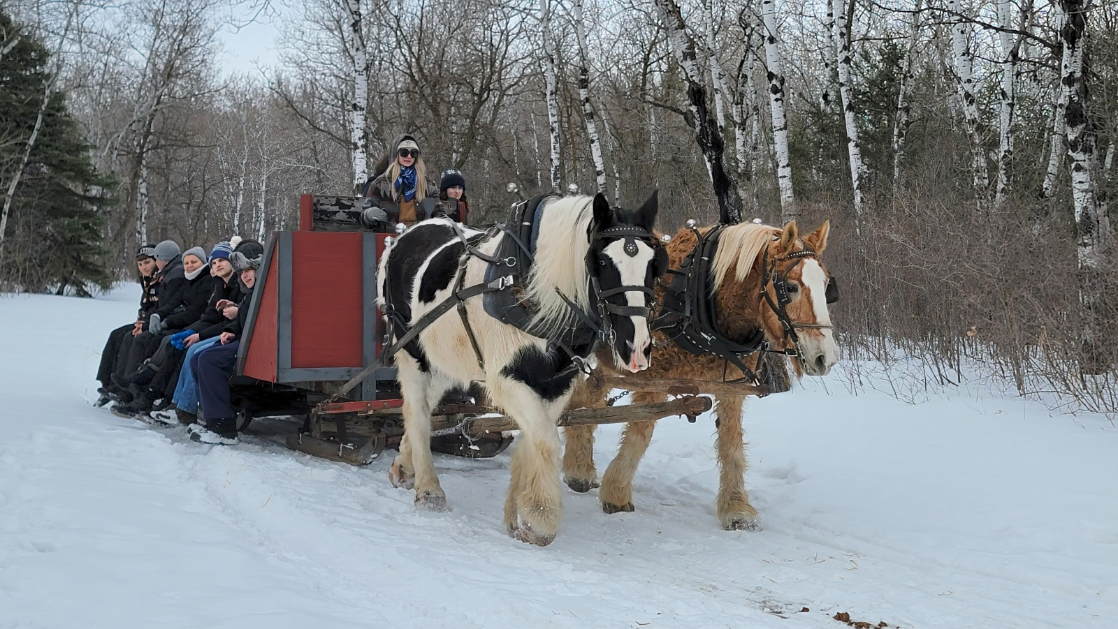 Всё традиционно. Катание на конной повозке, запряженной двойкой, со звенящими бубенцами по сказочному зимнему лесу под шутки-прибаутки катающихся. Весело, задорно!
