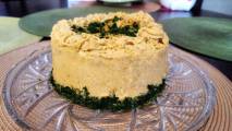 Сегодня утром Валера жарил оладьи, а я их смазывала паштетом и оформила тортиком. Смотрите на картинки. В лес привезла уже порезанный торт, красоту он, конечно, потерял, но вкус от этого не испортился.
