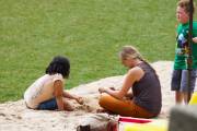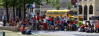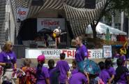 показывали акробатические номера на трапеции. У детского театра юные артисты пели и танцевали, приглашая на свой спектакль. Билеты на фестиваль не дорогие от 10 долларов за разовое посещение и 79 долларов на весь фестиваль. Есть специальные детские представления Kids Fringe. Лето в полном разгаре. На набережной реки Ассинибоин устроили песочный пляж с зонтиками и лежаками. Дорожки набережной отмывают от нанесенной глины наводнением. Столы с зонтиками давно украшают улицы Виннипега, где можно и в рабочий полдник уютно расположившись, что-то перекусить и посмотреть фестивальные шоу.