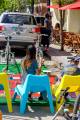 Паркин день немного разнообразил жизнь небольшого участка центра города. Всего представлено шесть творческих групп, плюс розовые человечки у перекрестка.
