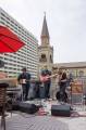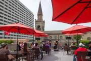 Концерты продлятся до 30 августа по вторникам с 12 до 13 часов. Терраса, как живой оазис в каменных джунглях, направо чудо архитектуры позапрошлого века, прямо стекло и бетон современности, что тоже придаёт шарма, отражая историческое здание церкви, небо, светофоры. Уютное место для обеда.