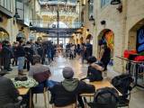 Участники французского фестиваля du Voyageur готовят к вечеру напиток Карибу, будут обслуживать гостей концерта за барной ледяной стойкой, наливая напиток в крутые стаканы изо льда.
