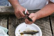 бы на выходные. Так и мы в один из выходных варили царскую тройную уху из свежей рыбы, пойманной нами же. Сначала рыбалка не задалась, лишь мелкие окуньки клювали. Их отпускали назад в воду, а позже решили, что из окуньков знатная уха получается и стали оставлять на берегу. Потом пошла форель и еще какая-то рыба, названия которой я не знаю, вроде как на ерша русского похожа и тоже мелкая, как окунь. Добытчики ловили пищу, дамы плескались в середине маленького озерца White Shell парка. День прошел сказочно, озеро принадлежало нам целый день. Ближе к вечеру решили сварить уху, посидеть перед сном у костра, поужинать.