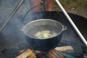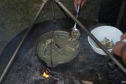 Правильная уха должна быть приготовлена из озерной воды, так говорил мой дед, знатный рыбак и охотник. Наши рыбаки, конечно, рисковать не стали и залили в котелок питьевую воду. Сначала в кипяток пошла мелкая рыбешка, сварили-вытащили, затем вторую партию и так несколько раз, пока всю мелочь не сварили, последней пошла форель. Конечно, луковица и другие специи - все было добавлено строго с домашним рецептом одного из наших рыбаков. Разлили по тарелкам, добавили свежую зелень, на природе, уха с костра, да в хорошей компании. Ничего вкуснее в жизни я давно не ела.