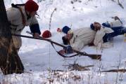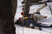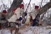 В стенах крепости обе армии построились и маршем двинулись на поле боя, заняли позиции (в первые минуты я оказалась в середине боя, ближе к английским солдатам, после первых выстрелов сбежала за их спины, еще позже совсем ретировалась, запахло порохом, почему-то боевые действия стремительно приближались ко мне, хлебанула адреналинчику и в кусты.)