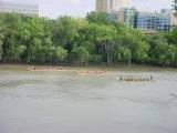 Лодки сегодня опустили на воду на Красной реке перед Форксом до соединения с речкой Ассинибойн, драконьи головы тоже прибыли, осталось украсить лодки. Соревнования стартанут от клуба в сторону Форкса, в каждом заплыве примут участие 4 команды. Длина дистанции 500 метров, обычно уходит на нее 3-4 минуты. Тренировки пройдут со специалистами клуба.