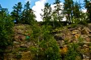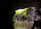 В этот раз берем самую обыкновенную моторку. 10 минут и мы в первом туннеле. Мотор приглушили, вьезжаем в каменный разноцветный свод. Переполошившиеся ласточки с криком вылетели из гнезд. В туннели довольно темно, но мы разглядели гнезда с птенчиками, одна-две головешки в каждом гнездышке. Отвесные стены перед туннелем все покрыты живописной растительностью.