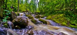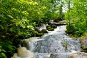 Мы поднялись к истоку и не поверили своим глазам, зеркальная заводь в камнях и траве на поляне в лесу. Лес растет на хребте, по которому вода и журчит, набирая скорость, падает вниз.