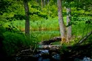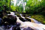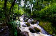 Несколько метров шипящей воды опять превращается в зеркало, в центре которого растут кувшинки. Идешь вниз вдоль водопада по темному лесу, кроны деревьев не пропускают солнечные лучи. И вдруг, картина резко меняется, перед тобой кувшинки на солнечной водной полянке, издалека я их приняла за утят, двигающихся по кругу, как в мультике.