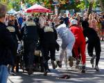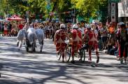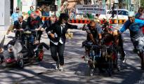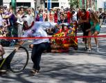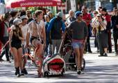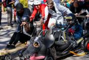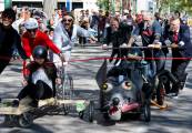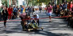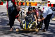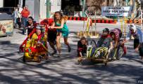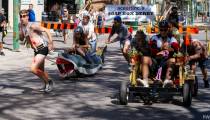 Сюрпризом оказались гонки на мыльницах, отличие от предыдущих: машинки толкали живые люди, а не наклонная плоскость. Толкающие почему-то часто падали, кидались мягкими игрушками, сталкивались между собой, шумно и весело.