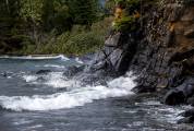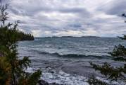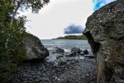 Ребята после первого пляжа отправились к машине, мы опять остались одни. Ветер выдул все тепло из нас, дождь промочил верхнюю одежду и мы последовали примеру наших спутников. Дорога теперь идет в гору, преодолев ее, согрелись и уехали из парка. Дождь перешел в ливневый, гулять в таких условиях неприятно, да и фотографировать без толку. Мы едем домой, погода диктует свои условия. Конечно, сюда надо ехать на несколько дней и желательно в хорошую погоду. Виннипежцам вообще-то повезло, нам в два раза короче путь, чем торонтовцам до красот Западного Онтарио. Нам можно добраться на машине, самолете, поезде или на катере, у каждого вида транспорта свои преимущества в путешествиях.