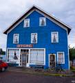 До города Серебряный Остров можно доехать на машине, что мы и сделали. Синюю шахтерскую общагу отреставрировали, сейчас в ней продуктовый магазин и легкие закуски подают в чайной комнате. Город превратился в дачный поселок, посещаемый туристами.