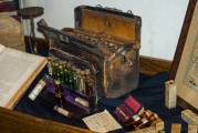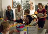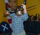 Для детей организовали отдельный стол с поделками, в музее можно примерить шапку викинга, взять меч, щит, сфотографироваться, представить себя викингом. Кусочек рваной русской газеты приклеен на внутренней крышке сундука.