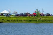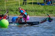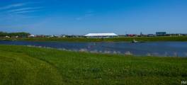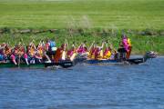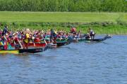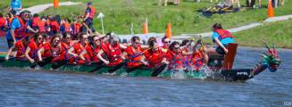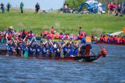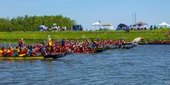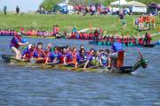 По соседству с аэродромом происходил фестиваль лодочных Драконов, что нам супер удобно, не надо покрывать лишние километры, всё рядом. Для соревнований изготовили новые лодки, которые спустили на воду перед гонками впервые. Людей собралось очень много. Группы, одетые в одинаковую форму, разминаются перед соревнованием.