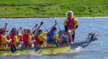 После самолетиков мы заехали к драконам. К нашему приезду были полностью готовы и нам не пришлось долго ожидать начало соревнований. Команды гребли отлично, слаженно, громко кричали и приходили на финиш. Но это всё не главное, важен сбор денег для раковой ассоциации. Точно такие же соревнования пройдут в сентябре на Форксе.