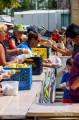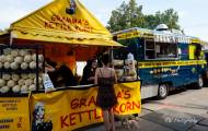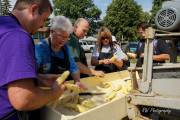 Очередь образуется огромная из желающих угоститься. В момент переворачивания котла, вернее в котле находится решетка, опущенная в котел, и когда ее переворачивают в пластиковые ящики - раздается гудок парового, древнего трактора. Толпа ликует, начинается раздача горячей кукурузы. На специально приготовленных столах раставлены специи для кукурузы. Мы в очередь не встали, поэтому угощения не получили и это правильно.