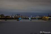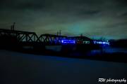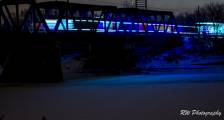 Хотелось запечатлеть поезд где-нибудь в горах через высокий железнодорожный мост, таких мостов несколько в стране, но не у нас в провинции. Поезд вышел из Кеноры, местность скалистая, в высоких елях, но по какой ветке будет двигаться, неизвестно. Решили не выезжать из города, стали изучать пути в черте Виннипега. Обнаружили второй железнодорожный мост через Красную реку и после концерта отправились туда. Особого впечатления от поезда на мосту не получили, зато увидели лису, гоняющую зайца вдоль берега.