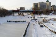 На пешеходном мосте выстроена мягкая снежная мебель вдоль ледовой дорожки, вместо потолка цветные фонарики. В предстоящие выходные Форкс планируется быть многолюдным. Катания на лошадях с 13:30 до 16:30, консультации профи начинающим снобордистам с 13:30 до 15:30, в вигвамах индейцы расскажут свои истории, усевшись вокруг костра - это все в воскресенье. В субботу внутри Форкса праздник - Китайский Новый год Лошади с 13:00 до 16:00. Последние годы виннипежские китайцы перенесли концерт из своего центра в Чайнатауне на Форкс. У нас сохранился репортаж 5-ти летней давности Нового года в китайском центре. На концерте традиционный танец Льва, боевые искусства, народные танцы. Ресторан обещают открыть на льду, где обслуживают в порядке живой очереди.