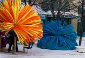 Форкс готовится к выходным, устанавливает "теплые домики", в виде цветных, пластиковых макарон, красных гигантских шарфов, подвешанных на мосте до льда реки, ветрорассекатели и другие строения и приспособления для согревания на ледовой дорожке во время коньковых пробежек.